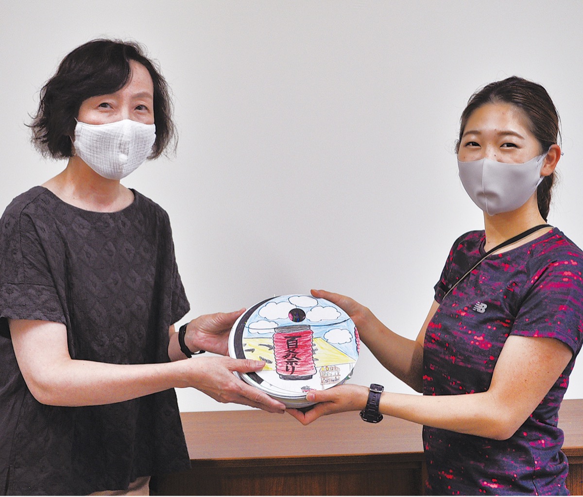 同施設の岩井理さんは「実用的でとても良いものをいただけて嬉しい。今回の取り組みがボランティアのきっかけになってくれれば。今年の夏まつりは規模を縮小して実施することになったが、そこで配りたい。この縁が、地域につながっていってほしい」と話していた。