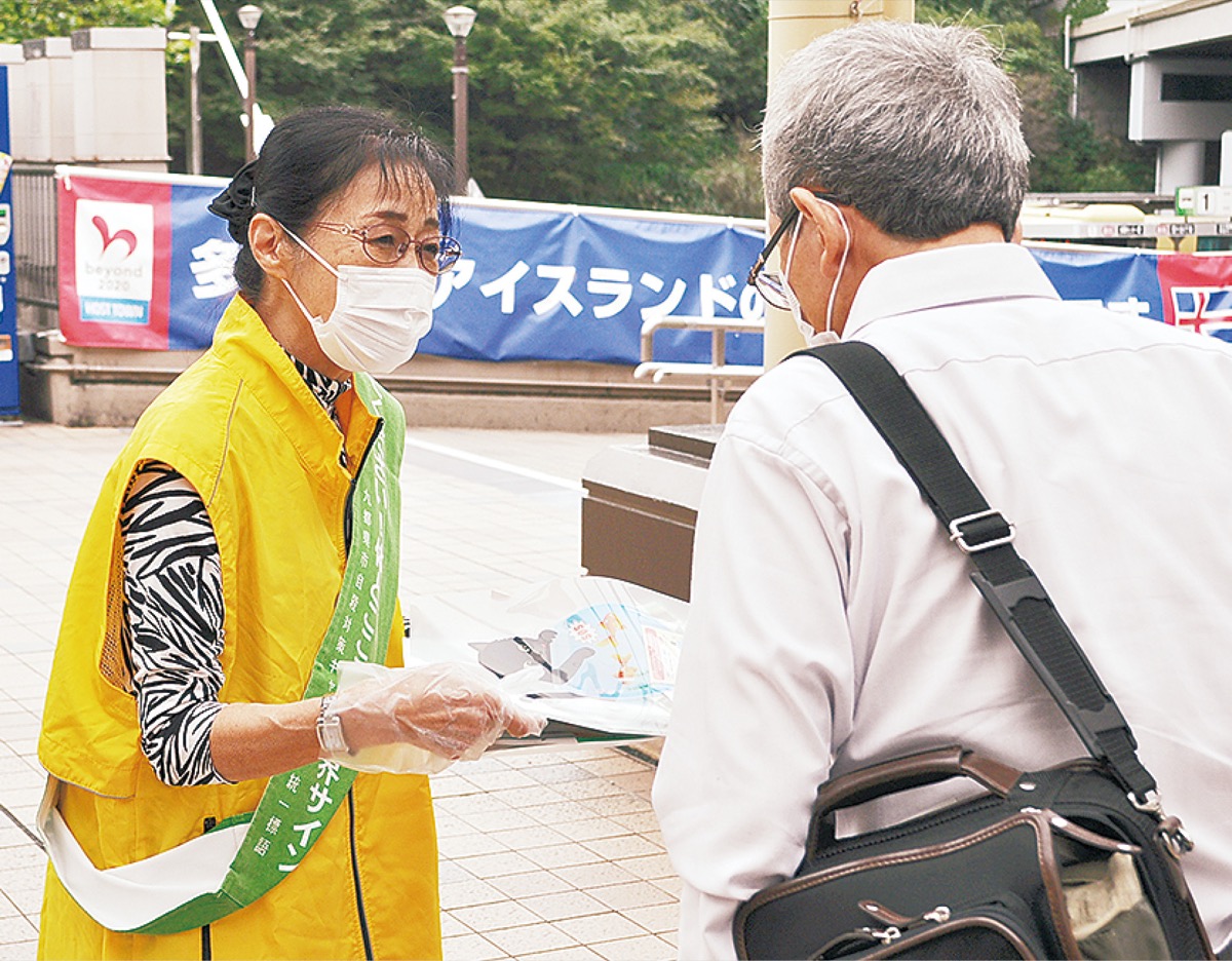 多摩市民生委員協議会(紀初子会長)は9月29日、市内4駅周辺で自殺防止を呼び掛ける啓発活動を行った。