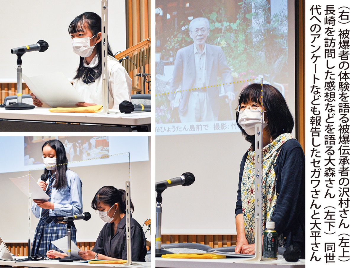 続いて、多摩市の「子ども被爆地派遣事業」で昨年長崎を訪れた大森日向さん(和田中学校2年)が発表を行い、「昨年の体験は忘れない。体験者の思いは伝えていかないといけない」と思いを語った。16年に同じく長崎を訪れたセガワ菜咲里さん(高校2年)と大平彩名さん(大学1年)は、体験事業の振り返り、同世代へのアンケートを発表し「暴力ではなく平和的な解決を考えること。国籍や宗教、人種というくくりではなく、その人個人として接することが戦争を起こさないために必要」「4年前と考え方が変わり、平和=当たり前の日常だと感じるようになった。新たな悲劇を生まないよう身近な所から小さな平和をつくり続けたい」と語った。その後長崎出身で市内在住のシンガーソングライター・カツルミさんがピアノの弾き語りや歌を披露したほか、平和への思いなども語った。