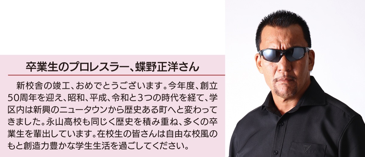 卒業生には、プロレスラーの蝶野正洋さんや、川崎市のジムに所属するプロボクサーで元日本王者の黒田雅之さんらが名を連ね、現在、高校の同窓会会長を務める、府中市議会議員の奈良崎久和さんは「私の子どももお世話になった学校。これまで1万5千人を超える生徒を輩出してきた。来年には、50周年の記念行事を予定している。新しい校舎となり、より地域に親しまれるようになれば」と願いを口にしている。