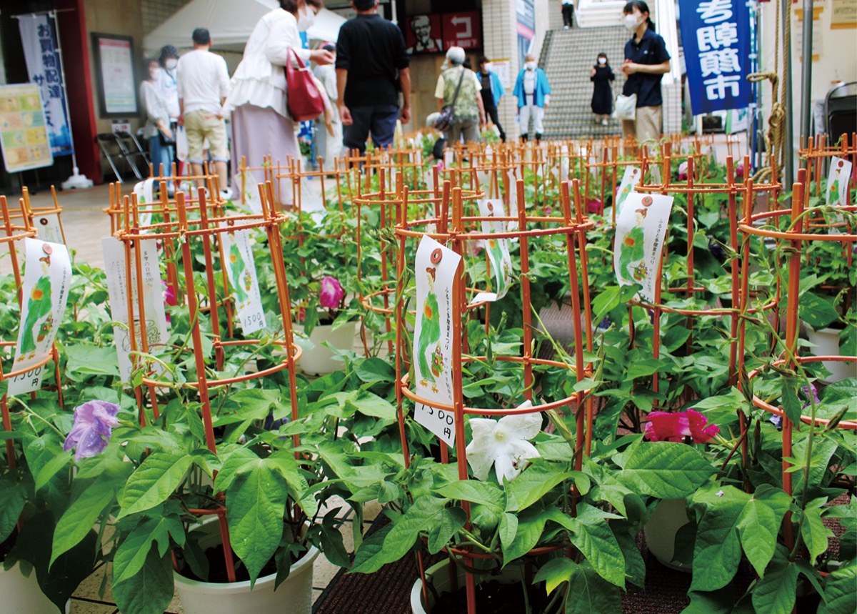 翌4日と2日間にわたって開催された今回の朝顔市はあいにくの悪天候に見舞われたものの、ピンクや青などの花を買い求める人が絶え間なく訪れ、「大雨が降ったにも関わらず、好評だった」と主催する実行委員会に名を連ねる多摩市の職員らを安心させていた。