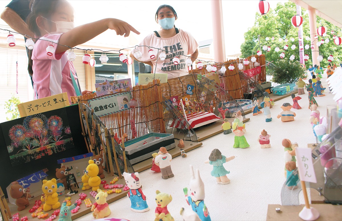 会の藤條まり子さんは「地域の皆さまに紙粘土でジオラマに登場する人やお店をつくってもらった。元々、私たちの夏まつりは全てが地域の手づくりなんです」と笑顔。
