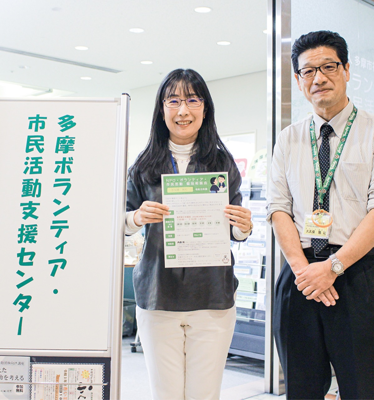 NPOとはNon-Profit Organizationなどの略称で、1995年に起こった阪神淡路大震災で市民活動により被害が最小限に抑えられた事例などから、その役割が注目され、法人としての法整備が進んだとされる。都のデータによると登録されたNPOで多摩市を拠点にする団体は現在、83法人。子育ての相談窓口としてや高齢者、障害者の支援団体。女性の活動を支える取り組みを進めるNPOなど、多摩では社会的弱者を救う存在となっている。
