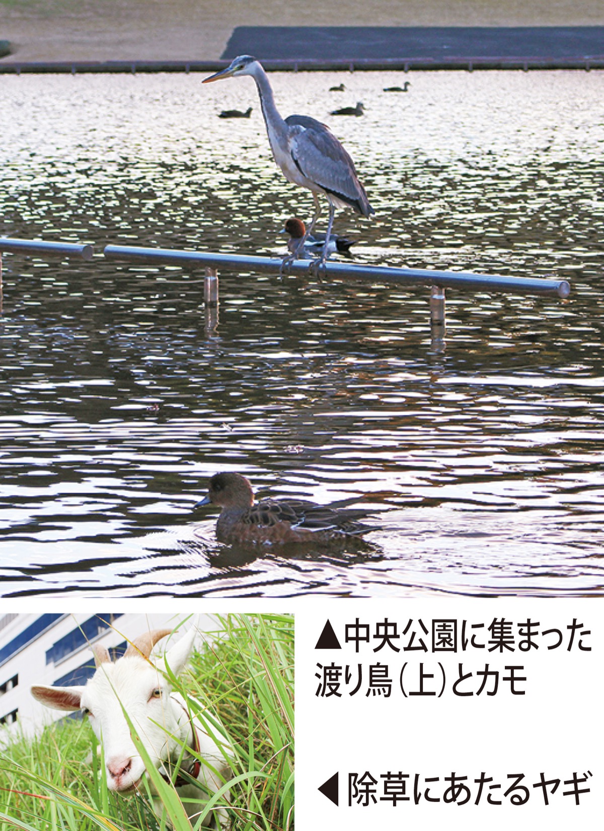また、商業施設が並ぶ一帯には意外な動物が活躍中だ。街なかにある駐車場の斜面で除草にあたるヤギたち。「草刈り機などと違い、二酸化炭素を出さずに環境にやさしい」と周辺の商業施設などを管理する新都市センター開発株式会社(鶴牧)が開放しているもので、例年春から秋にかけて登場。そろそろ今年の仕事は終了となるが、そのファンは多い。「人懐っこくてかわいい」などの声が通りすがる人のなかから聞かれている。