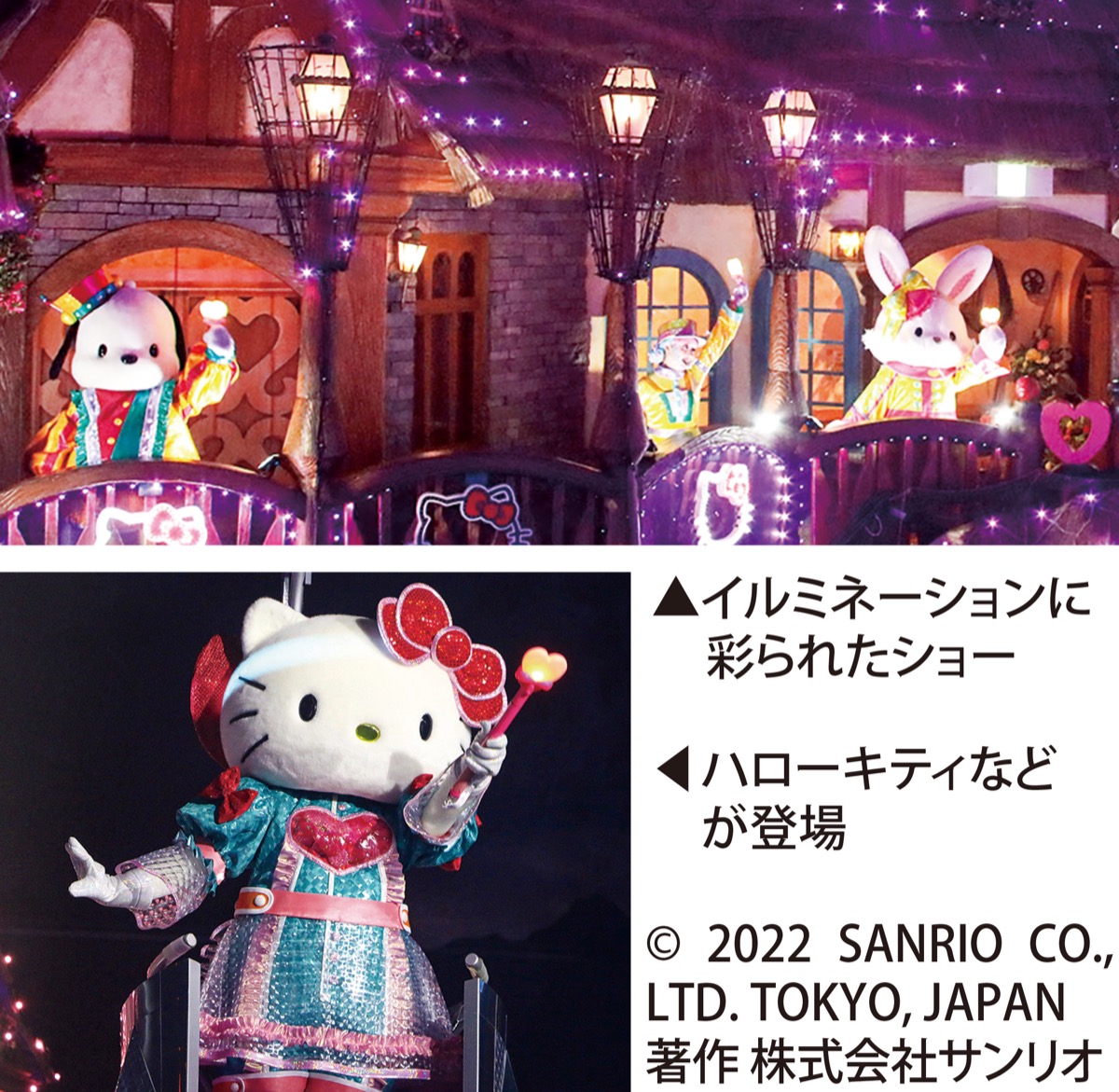 多摩市の屋内型テーマパーク「サンリオピューロランド」で先ごろ、ポップなダンスミュージックにのせてレーザーがきらめくライブショーがスタート。テーマパークのキャラクター、ハローキティなどが登場し、早速人気を集めている。一方で、このライブショー「Nakayoku Connect」はパソコンや動画投稿サイトユーチューブなどでも観覧できる「バーチャルショー」バージョンも用意され、実際に行われているものと途中で交わる場面もあるという。「Nakayoku Connect」についての詳細は専用のHPサイト(https://www.puroland.jp/nakayoku_connect/)で。所要時間は約15分。ショーでは身体に害のない光が使用される。