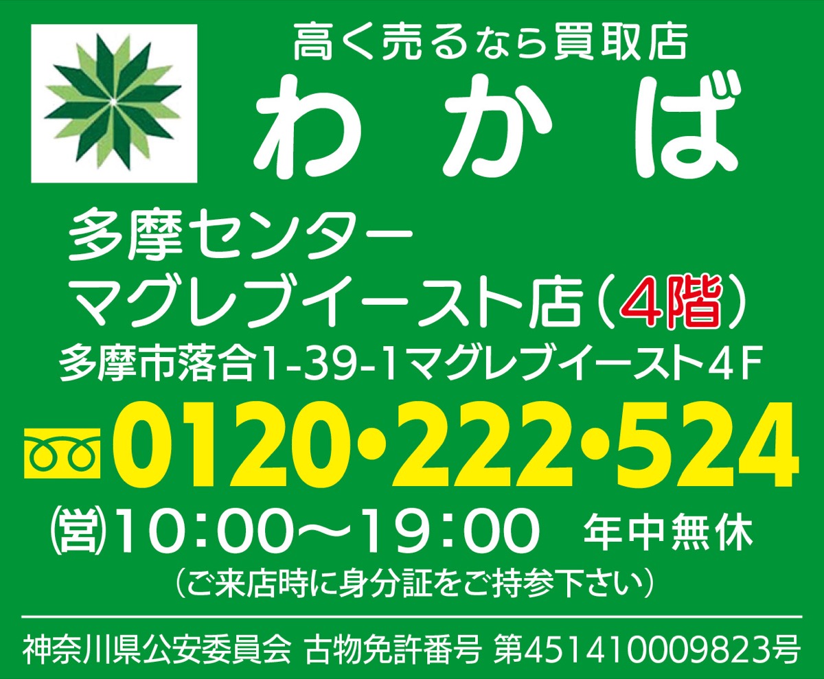 全国150店舗以上展開の「買取店わかば」。多摩センター駅近くの店舗で9月23日(金)まで好評の「ルイヴィトンバッグ買取強化キャンペーン」を実施。ボロボロで傷があっても20年以上前の古い物も5千円以上で必ず買い取る(大きな破損も査定対象)。