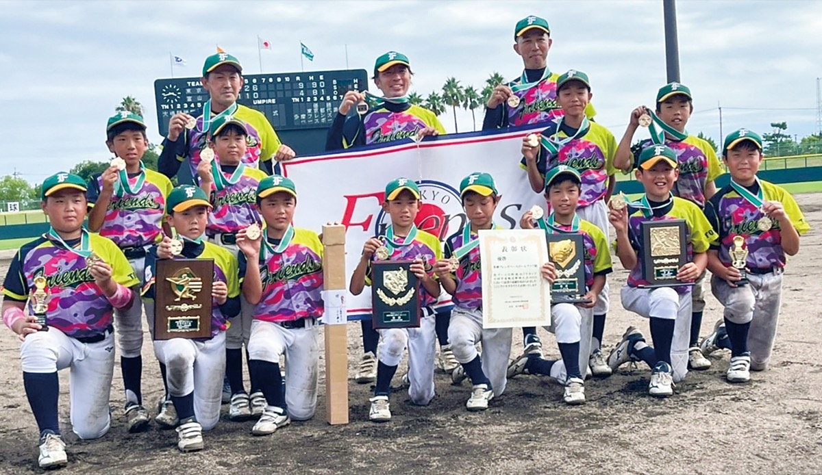 フレンズは先月18日に行われた初戦で地元徳島のチームを14対1と圧勝し好スタートを切ると2、3回戦、準決勝といずれも接戦ながら勝利をつかみ、決勝戦へ。シードの富山県代表チームとの決勝は中盤まで常にリードされる苦しいゲーム展開となったものの、最終回の6回に一挙に6点を獲得。相手を突き放し初出場、初優勝を果たした。