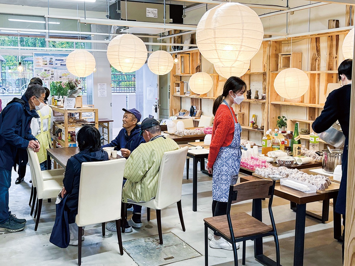 施設内には、カフェとしても使える食堂を中心に、日用品や食品が手に入る店のほか、キッズコーナー、高齢者が健康増進などに取り組める「デイルーム」などを完備している。取り組みを進めてきた一般社団法人コミュニティネットワーク協会の渥美京子さんは「住民の皆さんと1年半にわたりワークショップや社会実験を行ってできたもの。なるべく壁を少なくした広い空間と手作り感の漂う内装、南側の窓からの眺めが好評でした」と振り返る。