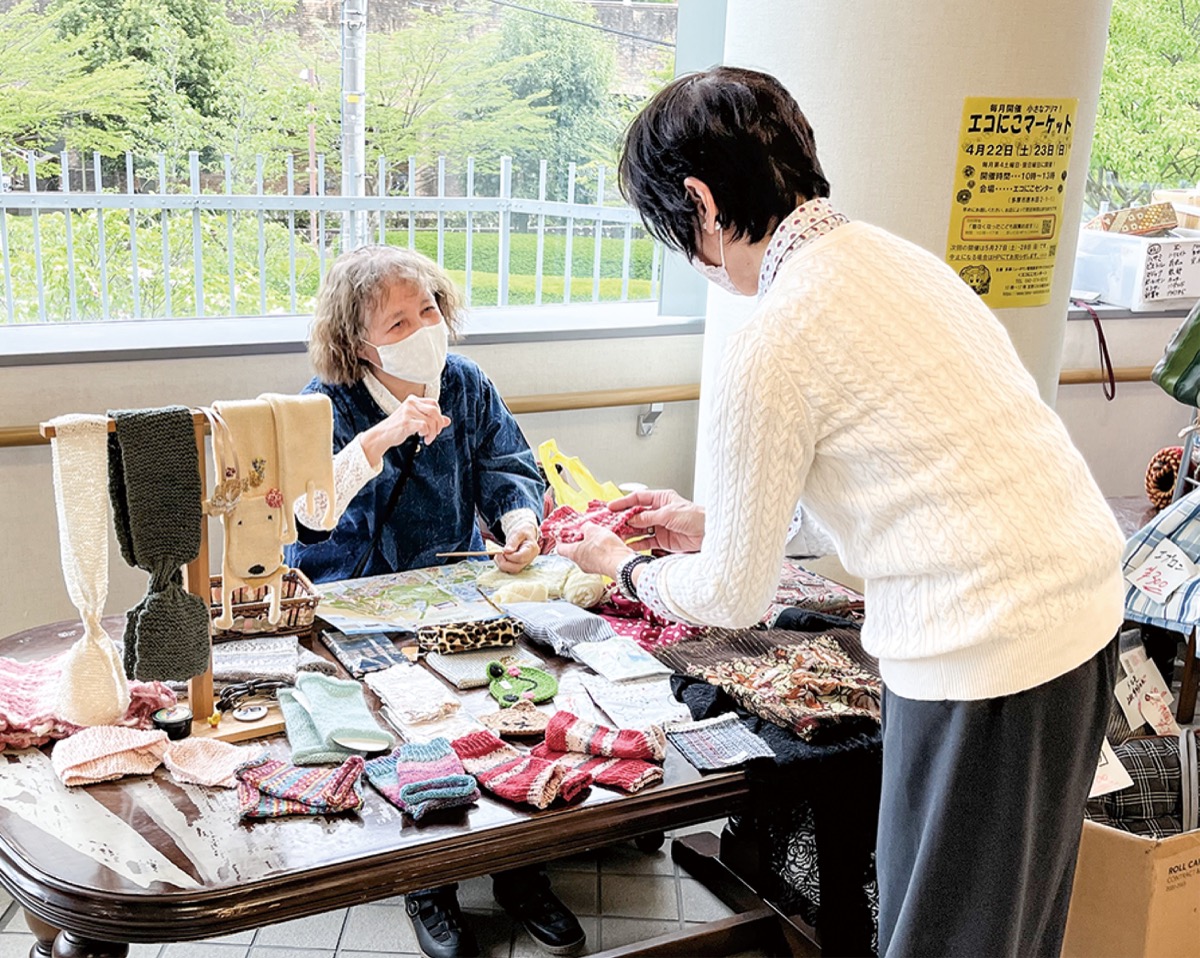 多摩ニュータウン環境組合リサイクルセンター(江尻京子センター長/通称:エコにこセンター)で4月22日と23日、エコにこマーケットが行われた。毎月第4土曜と日曜に開いているもので、館内に7つほどのブースを設けフリーマーケットやガレージセール感覚で行っている。