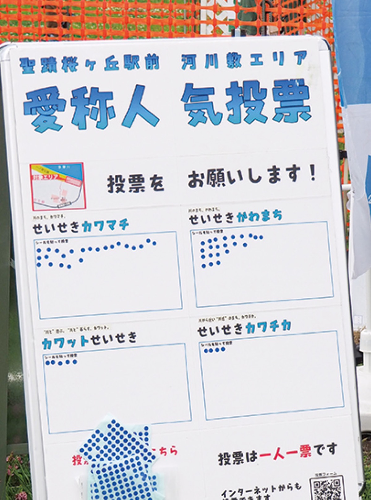 投票は一人一票で、期間は6月11日まで。投票方法は会場にある投票用ボード=写真=か、下記二次元コードから。