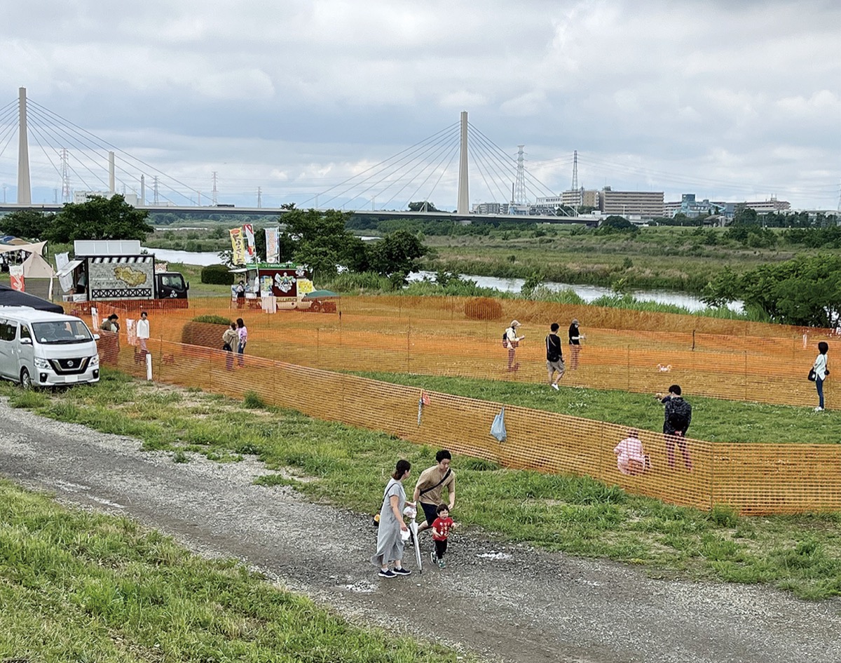 地域住民らが多摩川河川敷の活用方法を考える聖蹟桜ヶ丘かわまちづくり協議会は6月11日まで、駅北側の河川敷エリア(一ノ宮公園)で様々な企画を実施している。今後、民間活用を想定した公園利用のルール作りなどを検証する狙いがある。