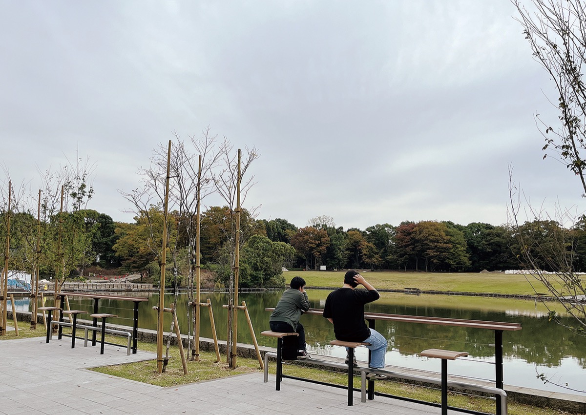 改修工事が進んでいる多摩中央公園。公園内にある多摩市立中央図書館に隣接する「BOOKパーク」と「大池前テラス」がこのほど完成し、10月21日にオープンした。ベンチや椅子が整備され、読書が楽しめる仕様になっている。お昼時には昼食を楽しむ人の姿も見られた。