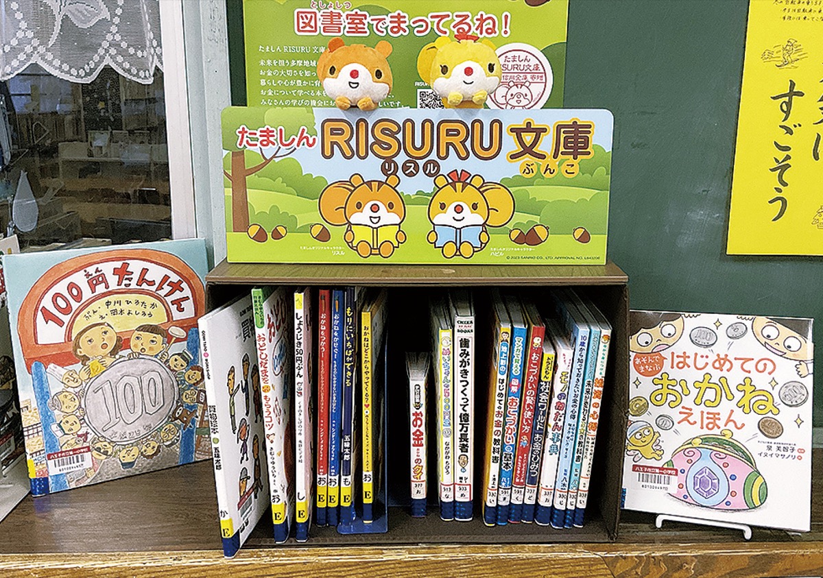 多摩市内にも支店を持つ多摩信用金庫(本店=立川市、金井雅彦理事長)は昨年12月の創立90周年を記念して、多摩地域の小学校にお金の大切さを学べる書籍セット「たましんRISURU文庫」を順次寄贈している。市内17校のうち14校には昨年11月に届き、残り3校には今月中に到着する予定という。