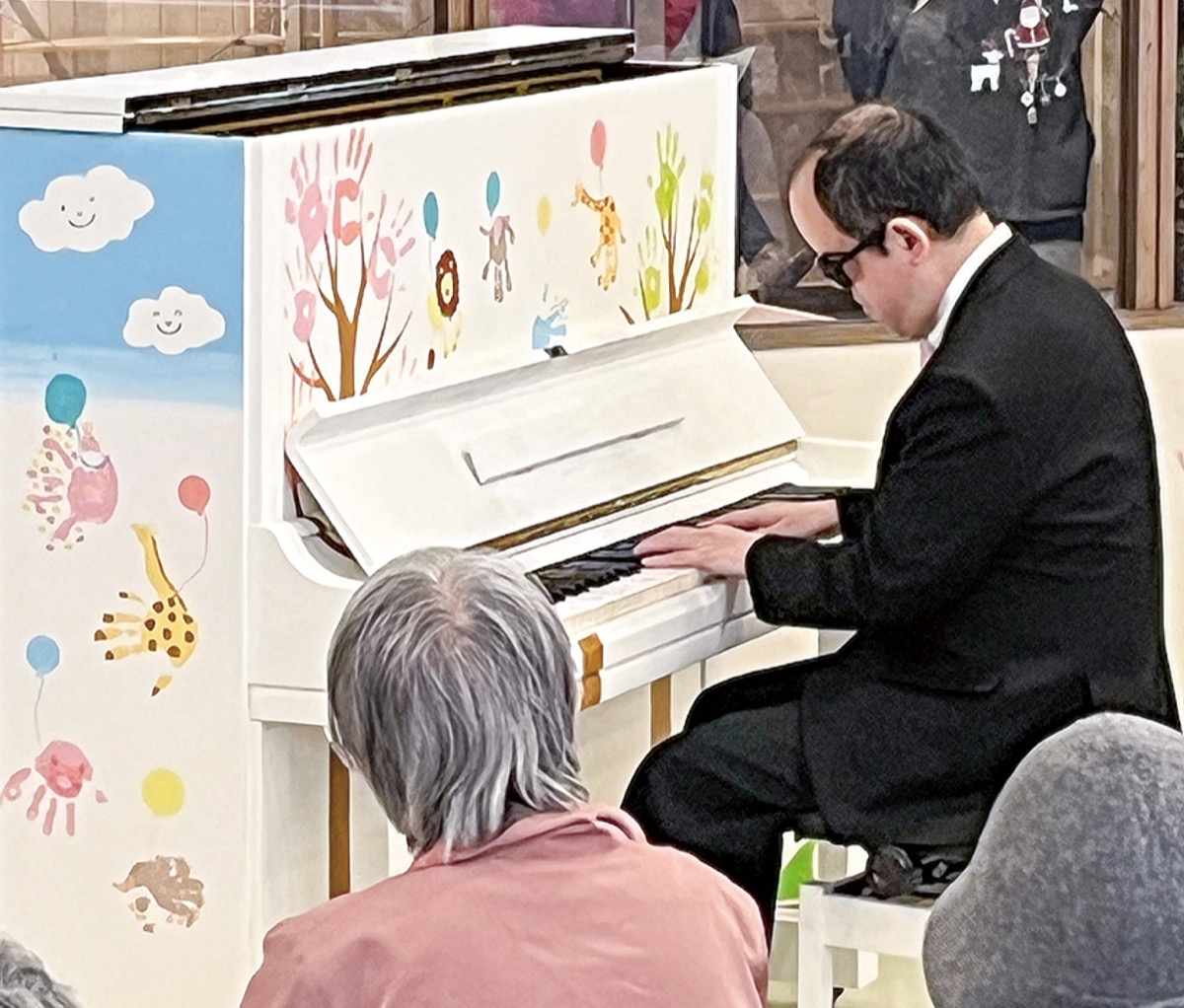 このピアノの初ステージとして当日、盲目のピアニスト・梯剛之さんによるコンサートがまつまる地域交流室で開かれた。モーツァルトやショパン、ドビュッシーなどの曲が演奏されると集まった地域住民から大きな拍手が送られた。