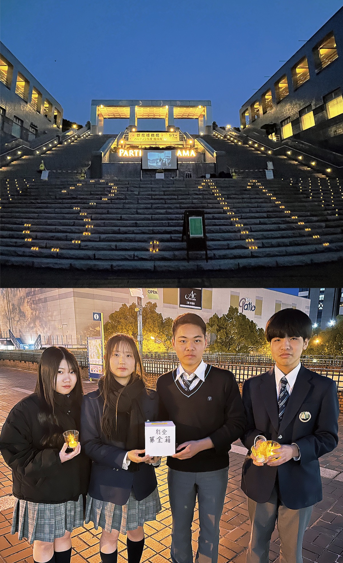 多摩大学附属聖ヶ丘高等学校災害対策ゼミと東日本大震災に学ぶ講座有志による、東日本大震災追悼キャンドルナイトが3月11日、パルテノン多摩大階段で行われた。