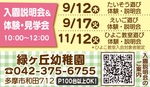 私立緑ケ丘幼稚園来週以降、入園説明会など