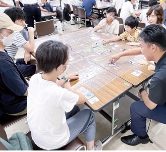 最初は、自助・共助を学ぶためのボードゲーム「LIFE」を実施した。2組の親子と職員らがグループになり、迫りくる災害から協力して生き残るゲーム。自分だけに集中することなく、仲間の状況を見ながら進行する内容とあって、参加者は周囲を見渡しながら真剣な表情でゲームに臨んでいた。
