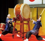 冒頭、多摩市を中心に活動する和太鼓せいせき鼓桜(栗原尚恒代表)のメンバーが舞台に立ち、大小さまざまな和太鼓を力強くたたき、会場をわかせると大きな拍手が送られた。