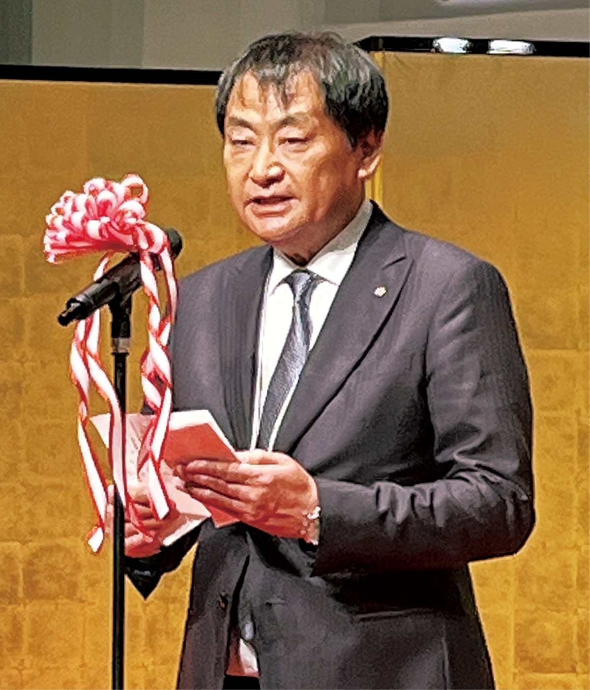 その後、あいさつに立った伊野会頭は、昨年7月に新札が発行された話題にふれ、「新一万円札の肖像になった日本資本主義の父と言われている渋沢栄一翁は、1878年、明治11年に東京商工会議所を開設し初代会頭を務められました。実業家の渋沢翁は名著『論語と算盤』のなかで技術の追究をめざす経済は社会のためになる道徳に基づくことが重要であり、そうでないと長続きはしないと申しています。