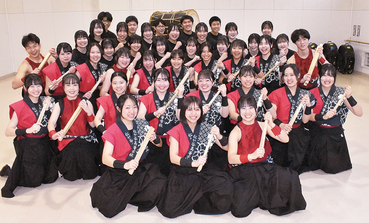同部は現在、男子8人・女子37人の計45人が所属。3年前からプロの和太鼓奏者に指導を仰ぎ、『新しい和太鼓』への挑戦を続けている。そのためか、これまで出場した大会では審査員の評価が割れることもあり、「(ドラなどの)金物の音が大きすぎる」「(太鼓の)フチ打ちが激しすぎる。太鼓がかわいそう」など、酷評されたこともあるという。