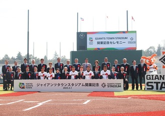 稲城市や多摩市などと連携協定を締結している読売ジャイアンツの新ファーム球場「ジャイアンツタウンスタジアム」が稲城市矢野口の南山地区に完成し、3月1日にオープンした。当日はジャイアンツOBや周辺自治体の首長など関係者によるセレモニーと2軍の試合などが行われた。当日のチケットは完売となり、新たなスタジアムの誕生を喜ぶ人の姿であふれていた。