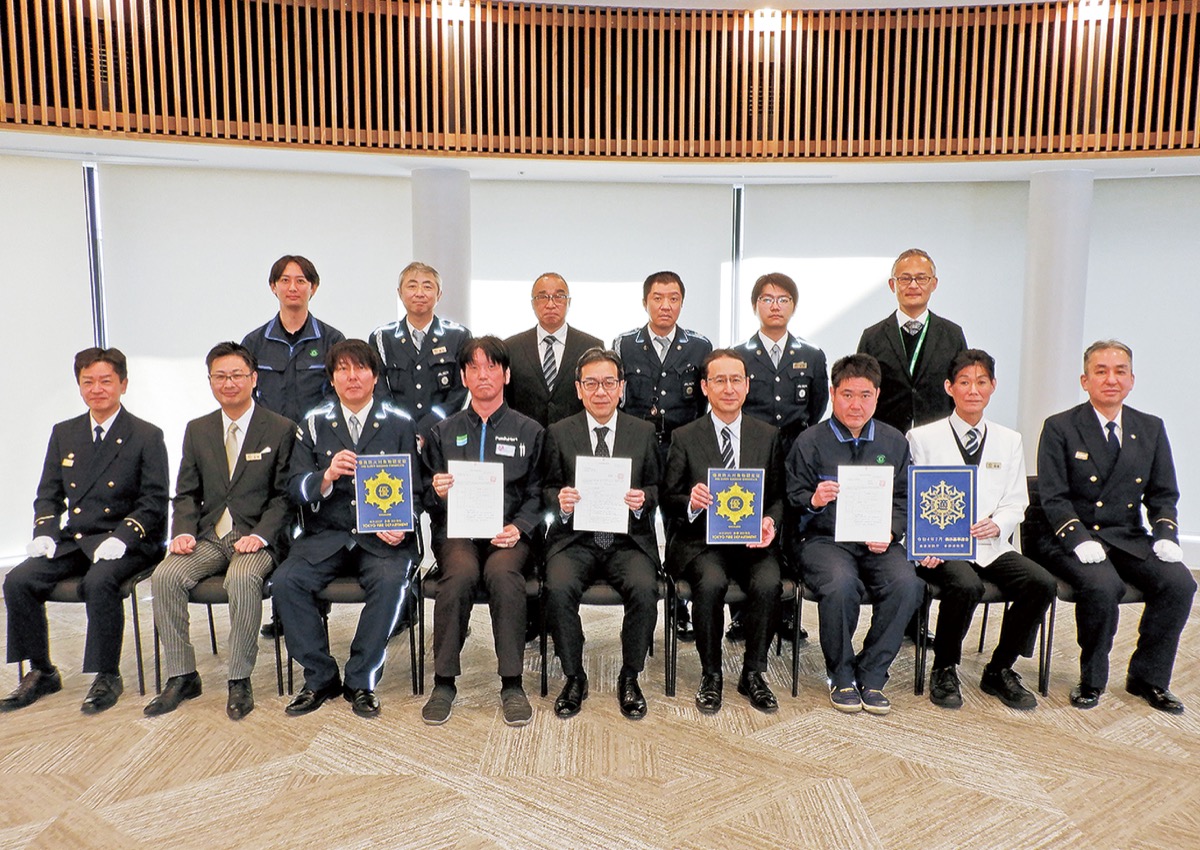 交付式には、小川勉多摩消防署長、予防課長のほか、田中代表ら関連企業関係者約10人が参加し、認定通知書や適合表示が交付された。