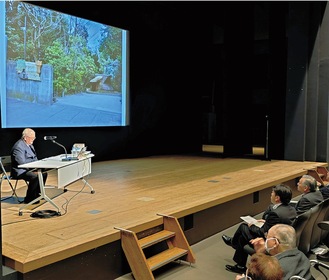 講師は多摩市文化財保護審議会委員の経験があり、愛宕在住の寺沢史さん=人物風土記で紹介=が務めた。「多摩市旧落合村地域の歴史」と題し、農業中心だった南多摩郡多摩村落合が道路、鉄道、河川が整備され、日本を代表するニュータウンへと変貌を遂げた道のりを語った。