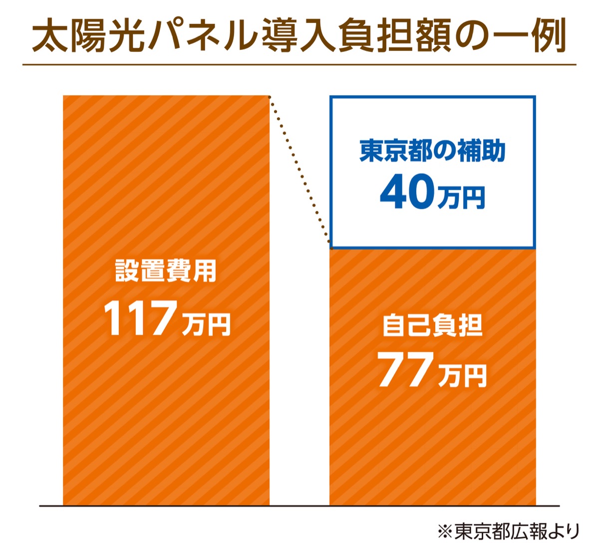 設置にかかる費用を117万円とした場合、都の制度を利用することで40万円が補助されるため自己負担は77万円に。加えてパネルのリースなど、初期設置費用を抑えるサービスを活用することで住宅の建設費に影響を出さずパネルを設置することも可能だという。