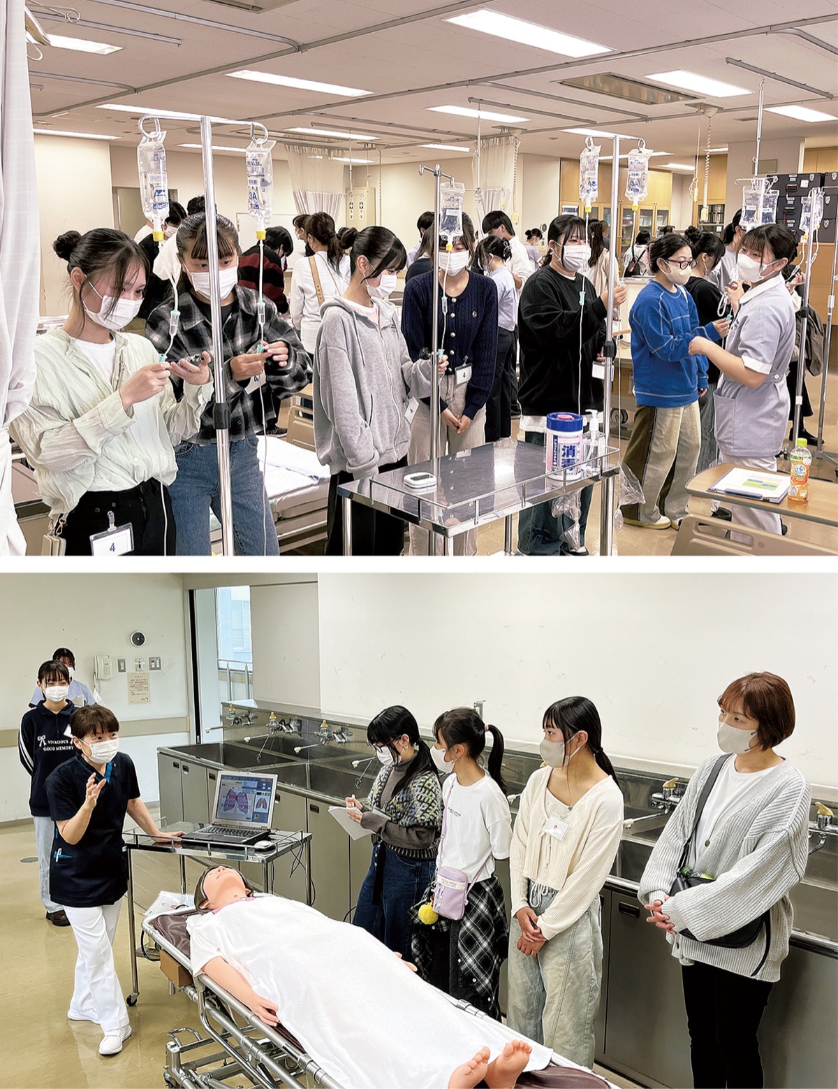 看護師をめざす高校2年生の参加者は「点滴などは難しそうなイメージがあったが、良い経験になった」「(実践は)少し難しかったけど、学校の雰囲気も知ることができて良かった」などと話していた。