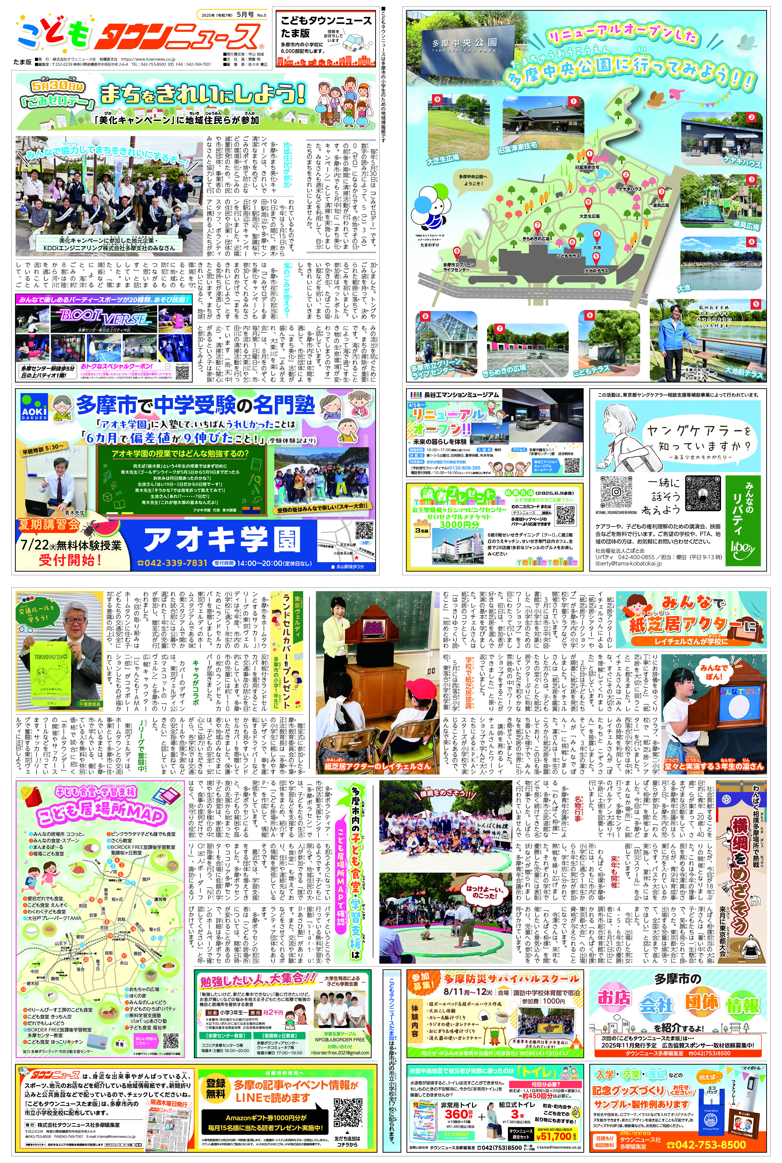 多摩市内の市立小学校全17校で配布される。「こどもタウンニュースたま版」 の2025年5月号を発行しました。