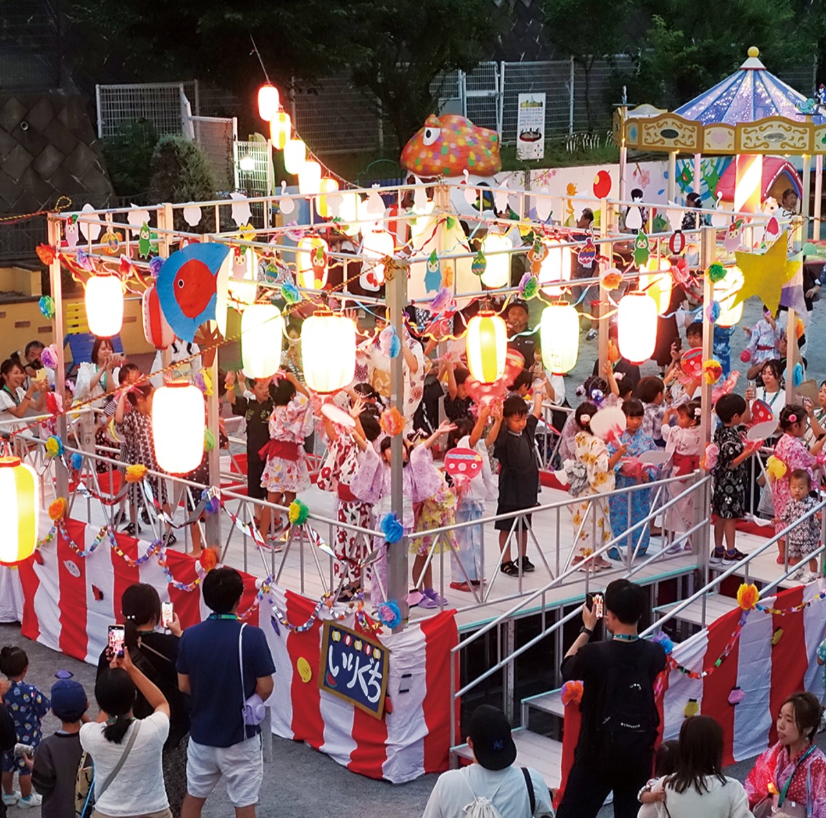 有馬園長は「当園では幼児期における本物体験を大切にして、さまざまなイベントや保育を行っています。今回の盆踊りも本物のやぐらやちょうちんを設置し、日本古来の行事である盆踊り会を、浴衣を着た園児たちが楽しんでいた。子どもたちにとっては夏の楽しい思い出の一つとなり、今夏の祭りデビューになったのでは」と振り返った。