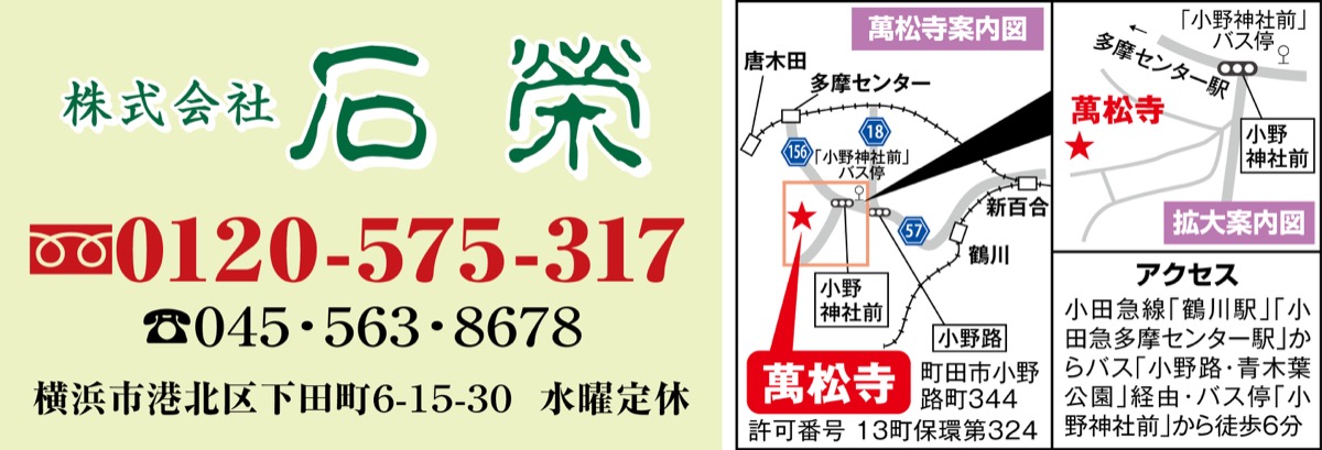 墓石は最高級の御影石を使用した(株)石栄(横浜市)の自社施工。デザインや大きさなどきめ細かく応える。永代使用料は12万円〜。仏様の有無、過去の宗旨宗派は問わない。本紙特典で工事費5万円引き。区画数限定。