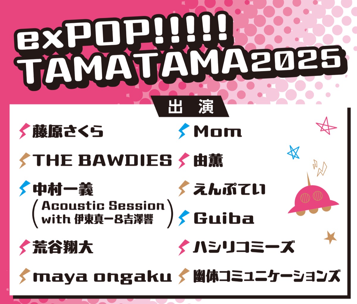 2年連続4万人動員し、多摩に集う多彩なポップカルチャーの文化祭として定着している「TAMATAMA FESTIVAL2025」が10月18日(土)と19日(日)、多摩センターエリア駅周辺で開催される。今年は多摩中央公園も加わり、3エリアで行われる。入場無料。