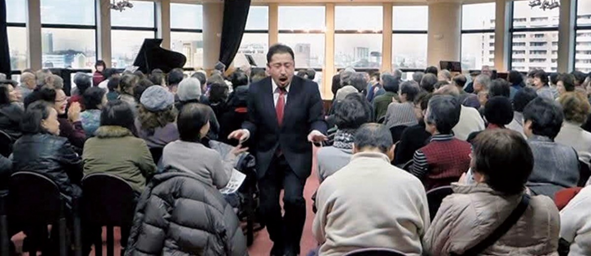 観客参加型コンサート「うたごえランド」を20年以上続けているピアニストで代表の石橋美恵子さん。石橋さんは、長年の社会貢献活動が評価され東京都社会福祉協議会や多摩市社協などから10の表彰を受けている。