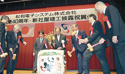 松和電子システム(株)(武田全巨代表取締役社長)が7日、創業40周年と新社屋竣工を記念した祝賀会を市保健福祉センターで行った。