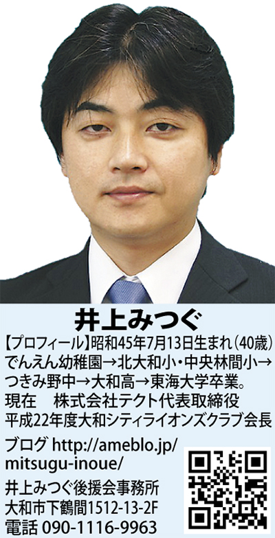 未来を担う子供達の為に、安心して暮らせる大和市を作っていきたいと考えております。