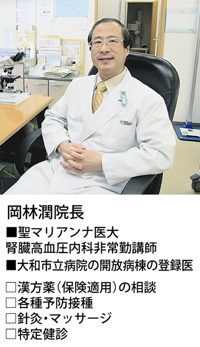 同院は内科、皮膚科、整形外科、リハビリ科、小児科と関連性が高い分野の診療科目を持ち、多角的な治療が特徴だ。一度の診療で別の疾患が早期発見治療できることから、関心度も高い。漢方薬の処方や鍼灸・マッサージ師も常駐し、体に優しい医療を提供している。「小さな事でも気軽に相談下さい」と同院。