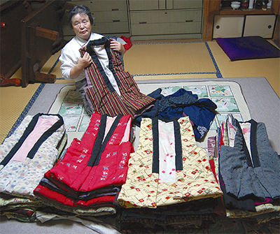 その後は週に3日ほど集まり、教材用に保存してあった着物を使って、ちゃんちゃんこ作りに没頭。それぞれが家事や仕事の合間を利用して作業を進め、多い人は1人で10着も作ったという。また、活動を知り着物を提供してくれる人や、中に詰める綿の代金を寄付してくれた人もいたそうだ。