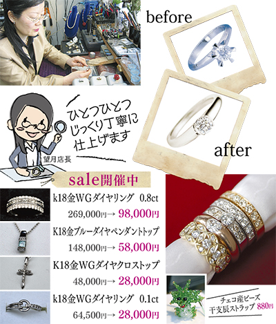 南林間の「阿門宝飾」は女性宝飾職人の望月さんのお店。ジュエリーのオーダーメイド・リフォーム、修理を手掛ける専門店として人気を呼ぶ地元密着店。