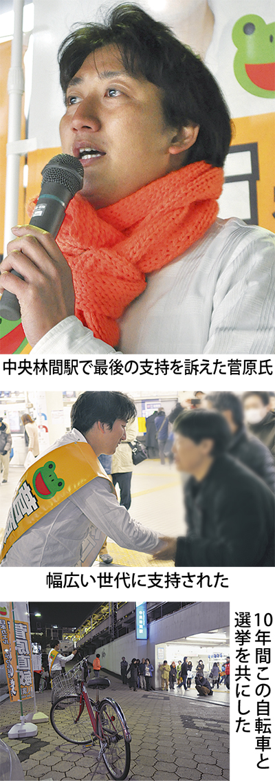 菅原氏の陣営は、佐藤正紀市議(40)=大和市が選対本部長を務め、昨年の統一地方選で初当選した選挙区内市議5人や元市議を始め、県内外から同僚の議員やボランティアが日替わりで応援に入った。