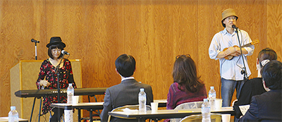 当日は、キーボード担当の昌子さんと共に『お米百面相』のほか、お米にちなんだ楽曲4曲を披露した。