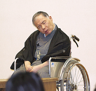 病に倒れ、後遺症が残る中、高座に立ち続けてきた大和市出身の落語家・林家かん平さん(64)。友人らに支えられ、20年前からつきみ野学習センターで続けてきた「林間楽語会」が、今月17日の開催で節目の40回を迎えた。