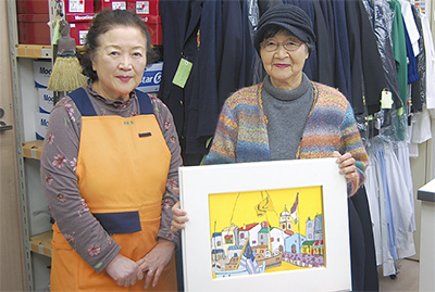大和駅の東側で約50店舗が加盟する商店街「大和新橋会」でこのほど、大和美術協会(有山実会長)と協力し、協会会員が描いた絵画を商店街各店舗に設置する「新橋通り絵画めぐり」の絵画交換が行われ、13店舗に新たな絵が飾られた。設置店と作者名は次の通り=敬称略。