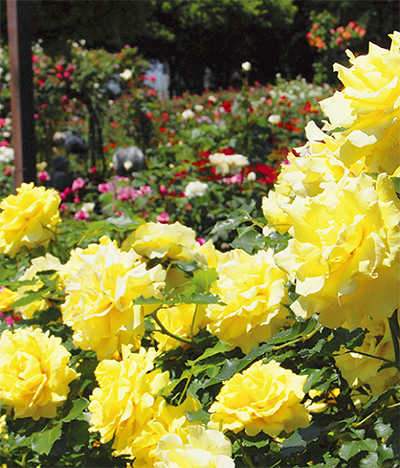 光陵公園のバラ園には、28種類約900本が咲き誇っている。