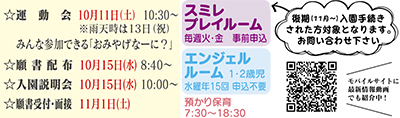 「見学もお気軽に。園の様子を見にいらしてください」と同園。仕事を持っている保護者などに向けた保育も実施。早朝保育や延長保育のほか、今年から夏休み保育にも対応している。
