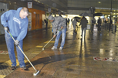 12月11日の朝5時50分。外は暗く通勤客もまばらな大和駅前に、ジーパンなどのラフな姿で集まっている老若男女―。「大和掃除に学ぶ会」(代表世話人・山崎貞雄さん)の年内最後の街頭清掃に参加するボランティアの人たちだ。
