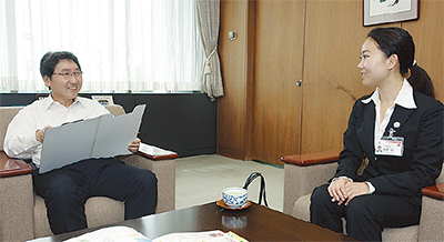 大木市長は「大和市と日本の代表として、体調に気を付けて頑張ってください」と激励。渡邉さんは「コミュニケーションを積極的に取って、現地の文化を早く理解し、現地の皆さんと同じ目線で活動できるよう頑張りたい」と話した。