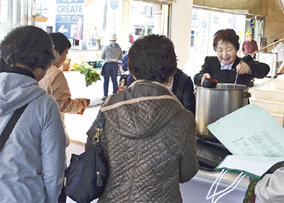 また、豚汁を無料で振る舞うブースには多くの来場者が集まり、熱々の豚汁に舌鼓。館内各所を巡るスタンプラリーでは、全てを集めた人向けに抽選会も行われ、健康器具に当選した人が笑顔で受け取っていた。