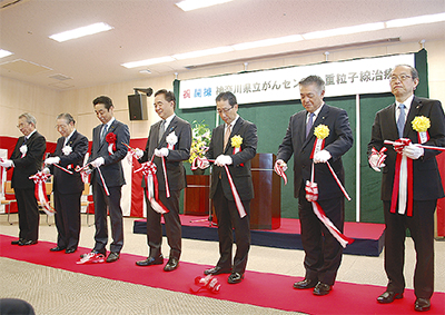 5日に行われた開棟式には黒岩祐治知事、土屋了介神奈川県立病院機構理事長、議員ら約170人が出席。あいさつに立った黒岩知事は「県民の長い悲願でした。日本のがん治療を切り開く施設にしたい」と話した。