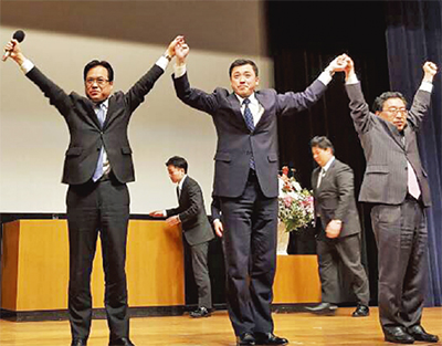 大和総支部長の谷口和史県議や公明党神奈川県本部代表の上田勇衆議院議員、公明党国際局次長・青年局次長の三浦信祐(のぶひろ)氏らが登壇した。主催者を代表して挨拶した谷口県議は「三浦氏は41歳になったばかり。力量を備えている人でこれからの日本になくてはならない人物」と紹介。